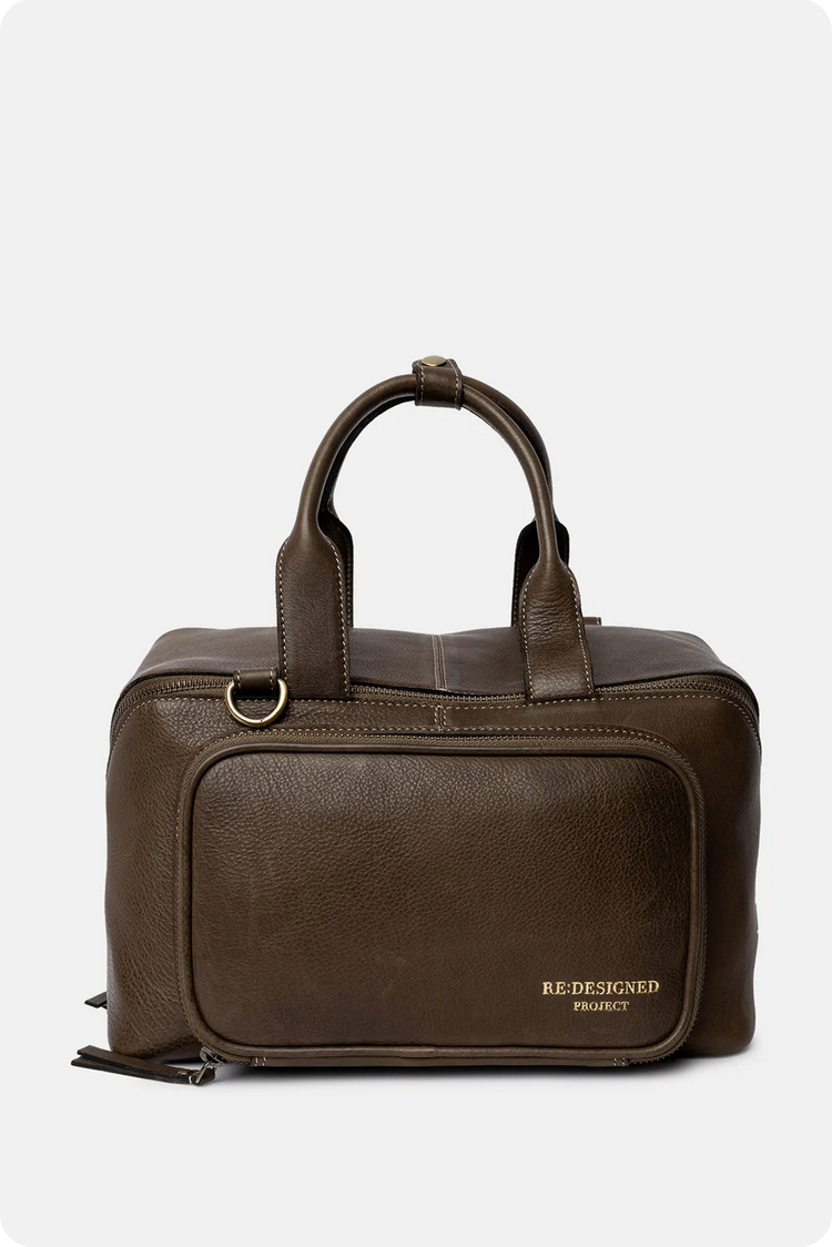 This wonderful leather bag No 39 from Re:Designed Project will be a new favorite. It's a generous size, suitable for a sweater and it easily unzips and sits open when you want to work on your project! It features the most fun, ingenious tool holders, a zip center pocket and an elasticized interior pocket. It even has an exterior zip pocket that's about an inch deep. It is complete with a strap for hands-free carrying if you like and multiple pockets for keeping your project and supplies safe and organized. Knitting on the go has never been simpler